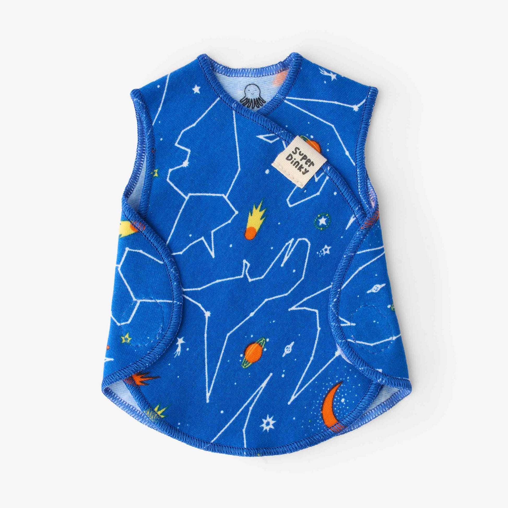 Experience the perfect combination of comfort and convenience with our Dino Galaxy NICU shortee baby vest. Made with soft and cozy organic cotton, this vest features a cool dinosaur print and velcro side fasteners for easy on and off. Specifically designed for premature babies, it provides the ideal fit and feel for your little one.