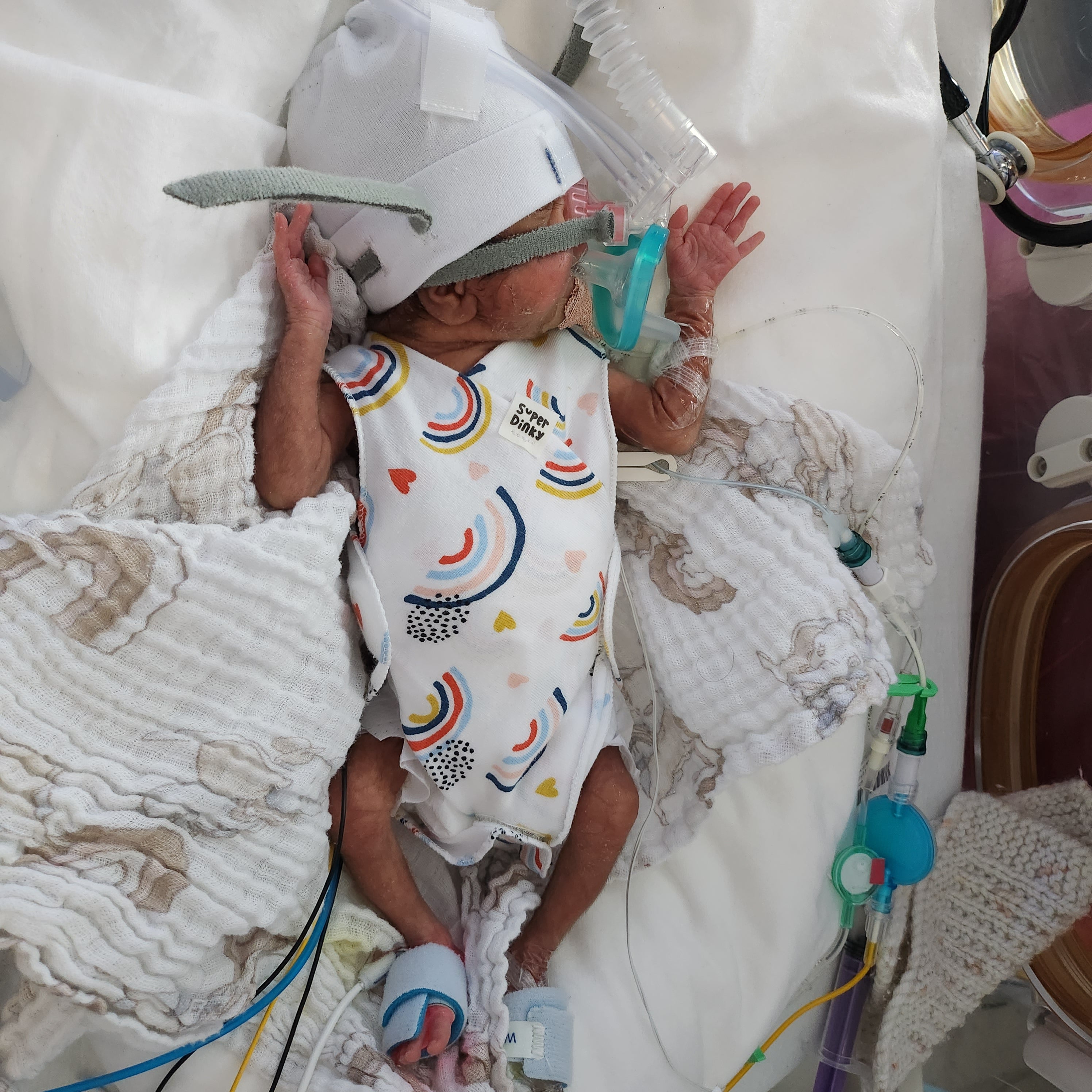 Inside is a beautiful organic handmade Superdinky vest, wrapped with care and sent directly to a neonatal unit. The parcel includes your handwritten message of support. NICU staff gift your parcel to a family who needs it most.