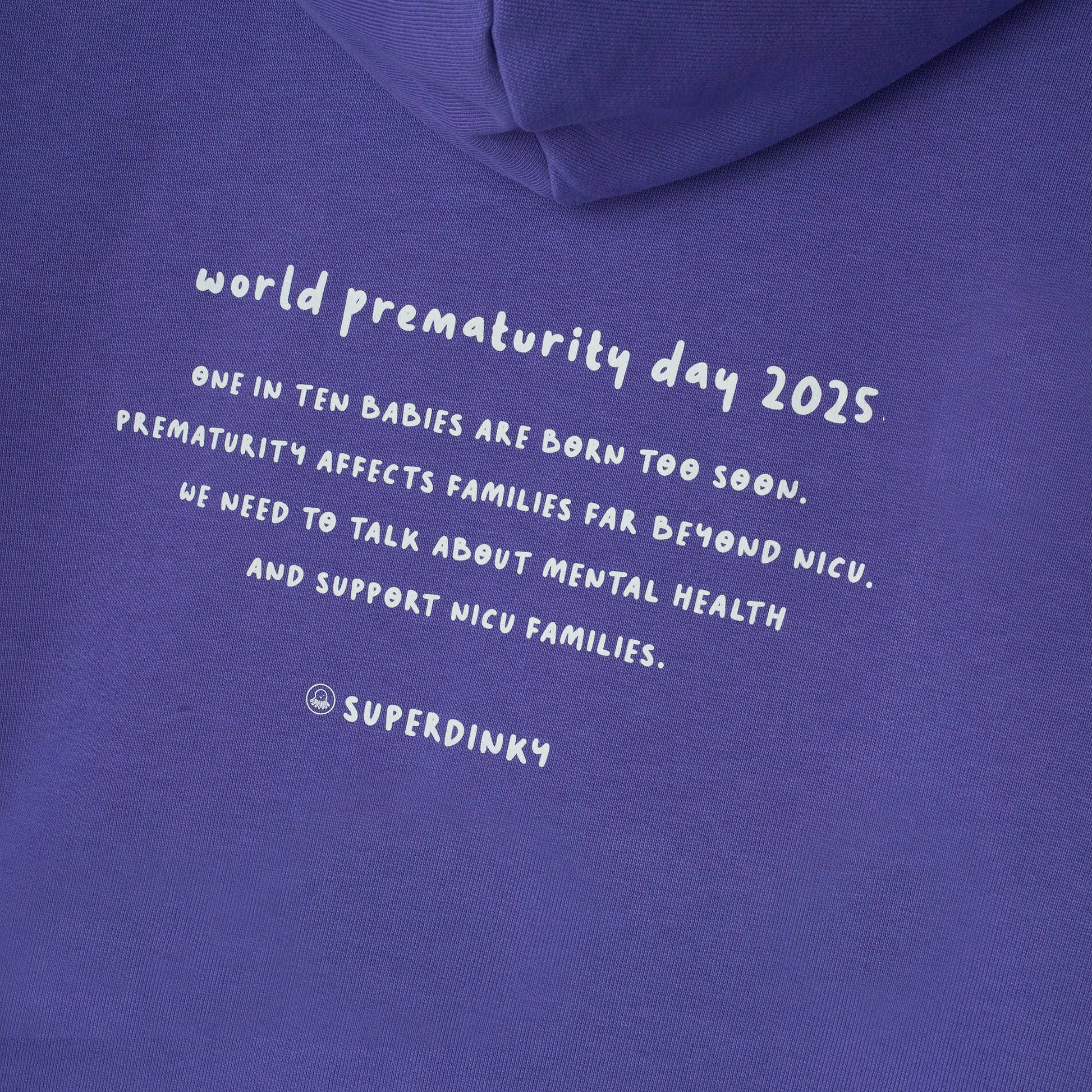The SuperDinky Preemie Power Zip Thro Hoodie is a unisex limited edition, cosy, and organic garment designed by a preemie mum to honour World Prematurity Day.
